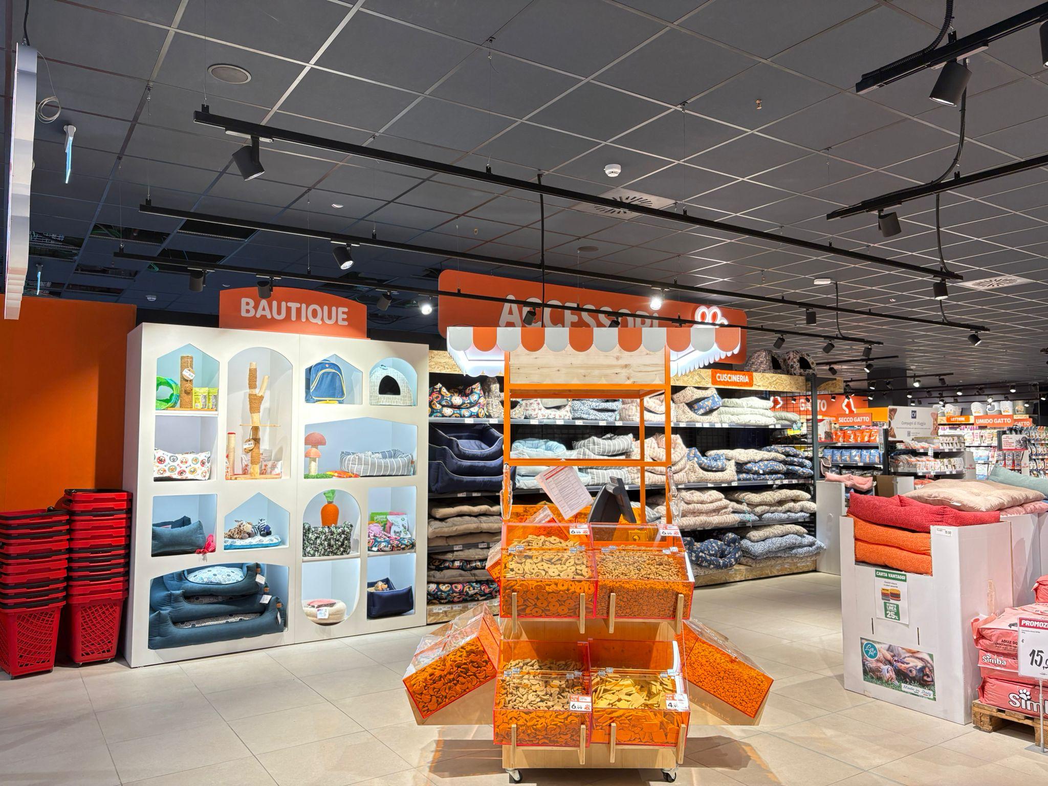 Il nuovo Pet Store propone un assortimento ampio e diversificato per cani, gatti e piccoli animali, tra cui tartarughe, uccelli, criceti e conigli, con una selezione di prodotti specializzati, accessori e giochi. L’offerta comprende anche le linee per il pet food a marchio del distributore: Compagni di Viaggio e U!. Nel primo caso si tratta di una proposta premium de il Viaggiator Goloso con oltre trenta referenze tra alimenti secchi e umidi, con formulazioni grain free, monoproteiche e soluzioni specifiche, come quelle dedicate ai gatti sterilizzati, per rispondere alle diverse esigenze nutrizionali.