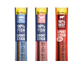 GimDog presenta Sport Stick Salmone e Sport Stick Trota, con il 90% di pesce, e Sport Stick The Mono, con Manzo al 96%, quale unica fonte proteica animale